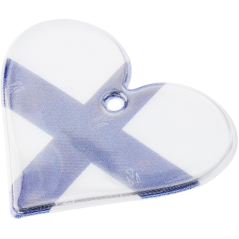 Catarifrangente morbido a forma di cuore, fornito con laccetto, catenina di metallo oppure spilla da balia. Con laccetto e spilla da balia, o con catenina di metallo. Il materiale catarifrangente è di 3M Scotchlite ed è conforme alla normativa EN13356:2001. La stampa viene effettuata sotto il rivestimento reflex per non diminuire l'efficacia del catarifrangente.