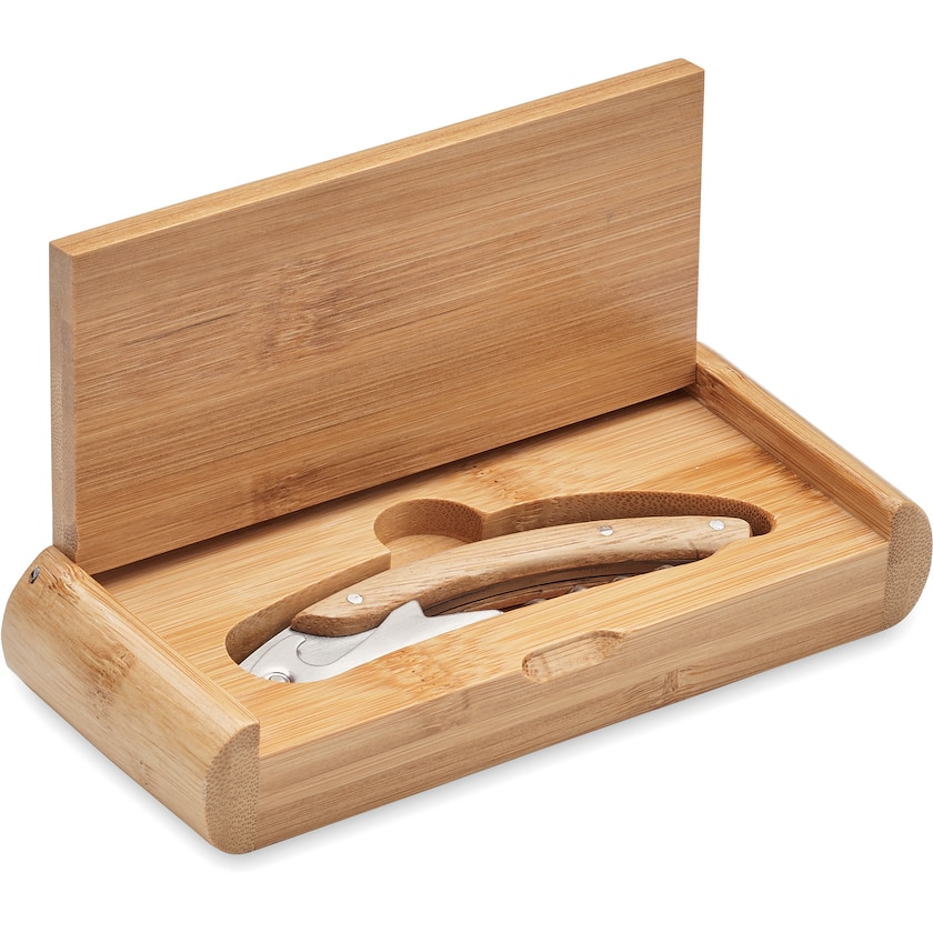 Esclusivo cavatappi in bambù e acciaio inox. Consegnato in una confezione regalo in bambù.