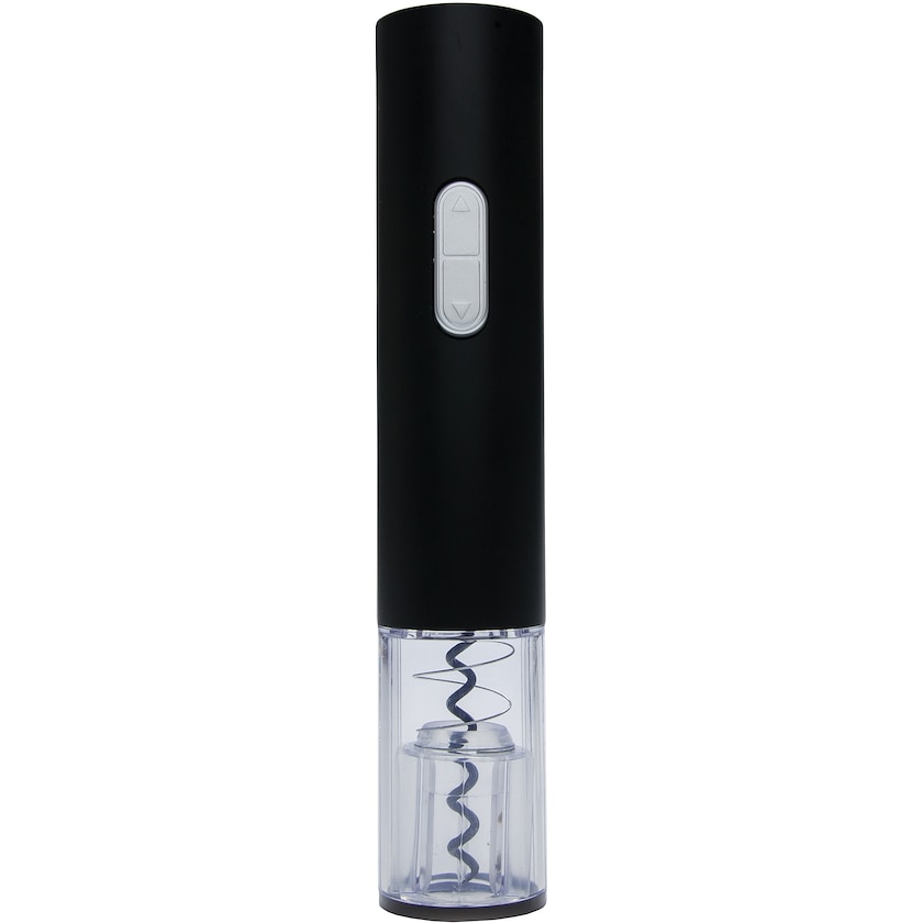 Cavatappi elettronico con cui si possono aprire bottiglie semplicemente premendo un pulsante. Alimentato con 4 batterie AA (incluse). Fornito in una confezione regalo in cartone.