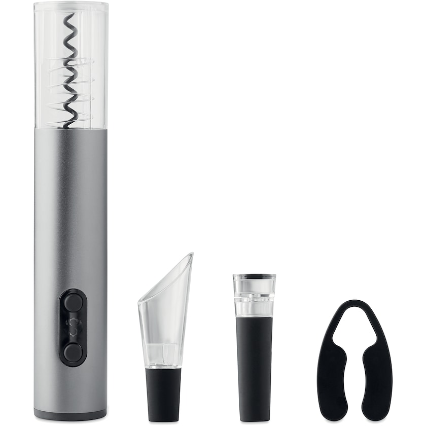Set con cavatappi elettrico. Il set contiene quattro parti. Viene consegnato in un bel cartone regalo.