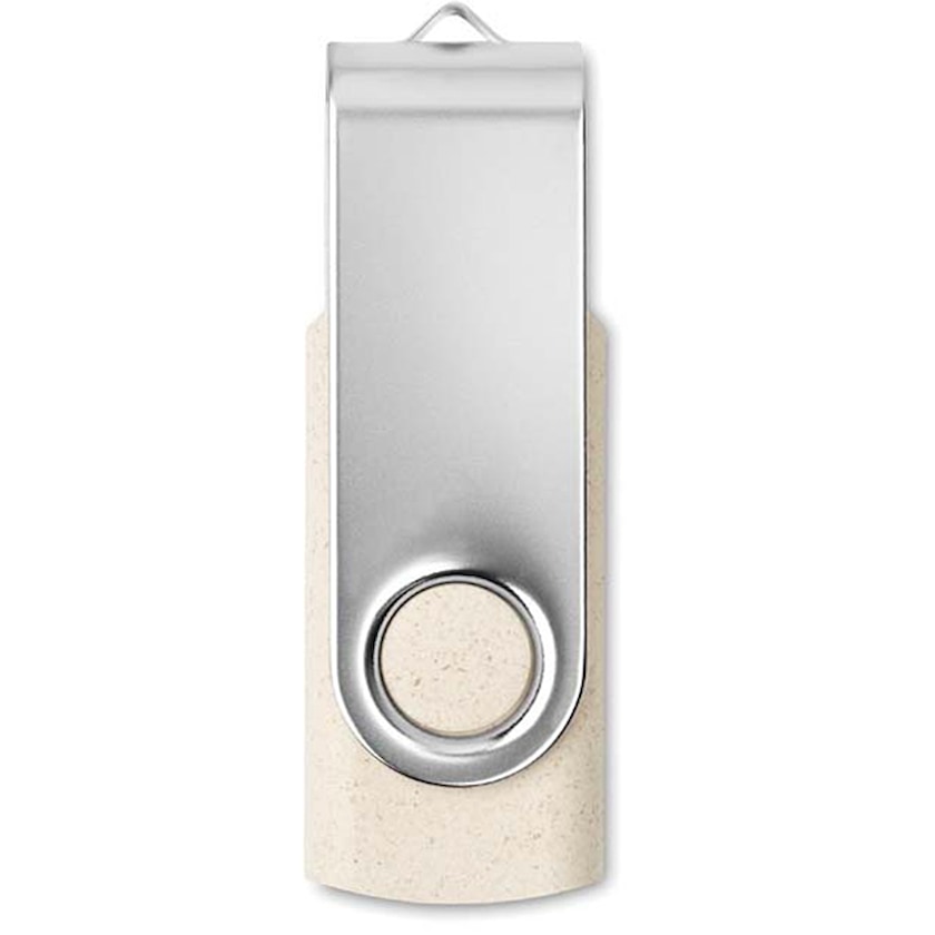 Chiavetta USB ecologica personalizzabile con stampa o incisione a laser. Argaty è realizzata in metallo e un mix ecologico di paglia di grano e polipropene. La stampa viene realizzata al massimo in due colori.
