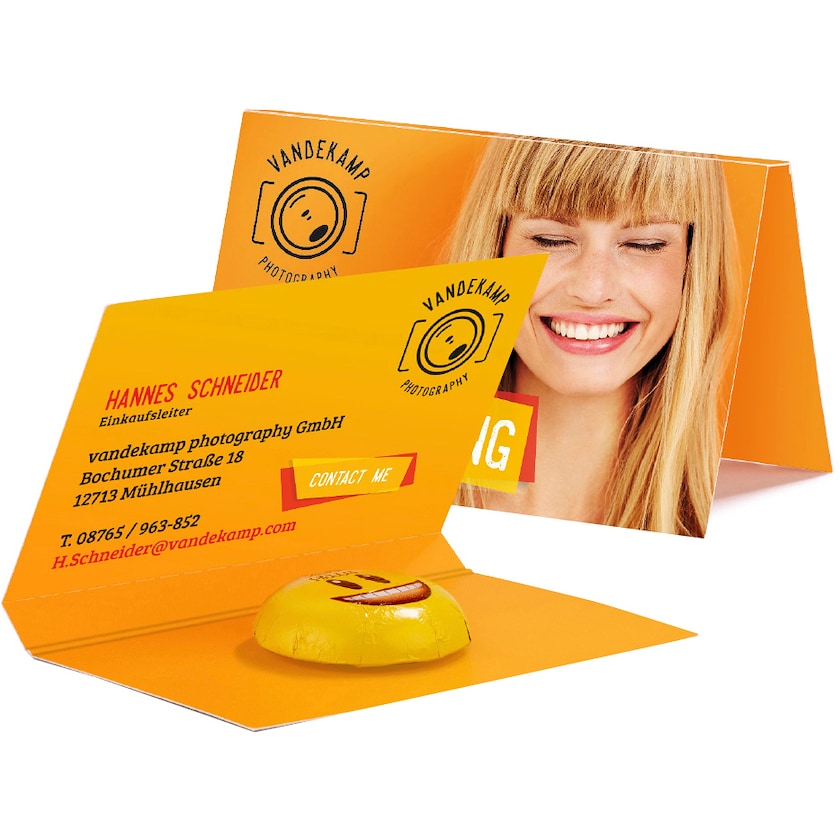 Cartolina con un cioccolatino Lind Emoticon al suo interno. Scegli quale femoticon vuoi. L'intera carta è stampata digitalmente secondo i vostri desideri.
