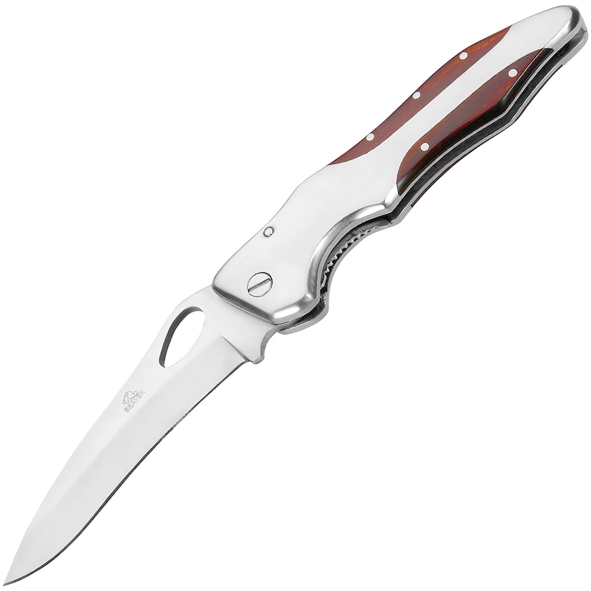 Esclusivo coltellino con manico in acciaio inox e legno. Con chiusura di sicurezza che ne impedisce l'apertura accidentale. In elegante scatola regalo.
