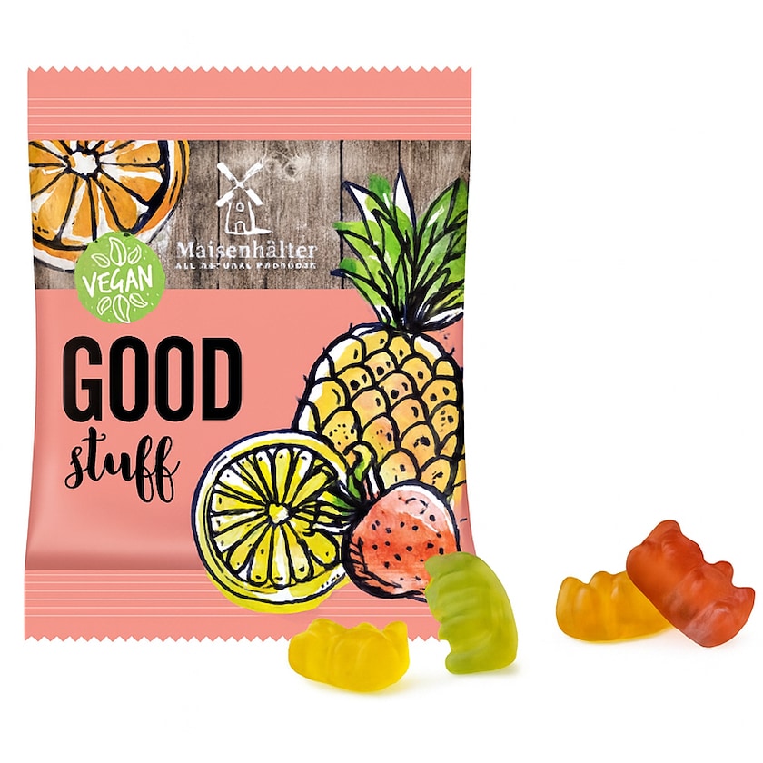 Orsetti gommosi vegani di Trolli. L'intera confezione è stampato secondo i vostri desideri. Una scelta perfetta per chi cerca caramelle vegane.