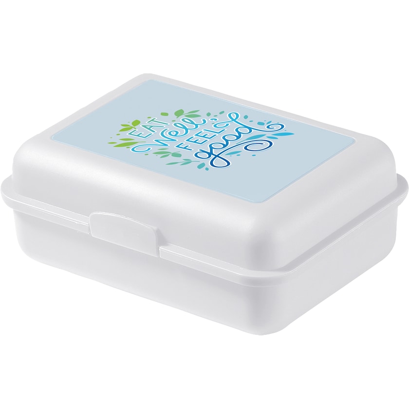 Portapranzo ecologico con grande stampa iMould sul coperchio. Questo portapranzo è realizzato in bioplastica resistente, non contiene BPA, è approvato per l'uso alimentare ed è insapore. Prodotto in Germania. È personalizzato con stampa digitale resistente all'acqua, all'uso e ai raggi UV. Ecco un portapranzo con fantastiche possibilità di stampa!