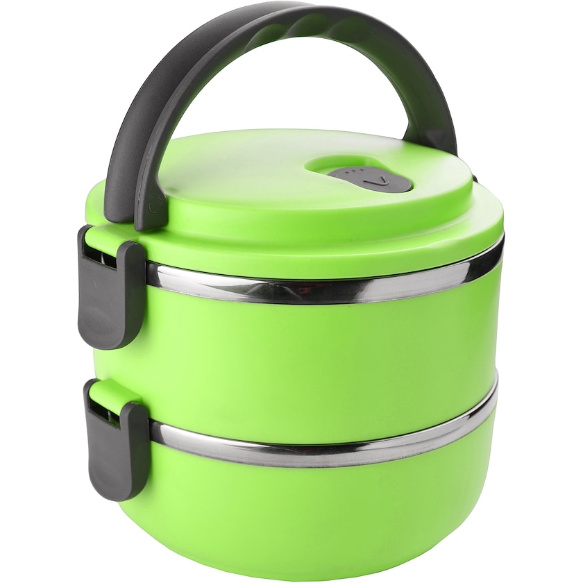 Contenitore per pranzo in acciaio inox con due recipienti. Grazie ai due recipienti è possibile portare con se due pietanze. Contenitore da 140 cl. Ordina contenitori con stampa da Axon Profil!