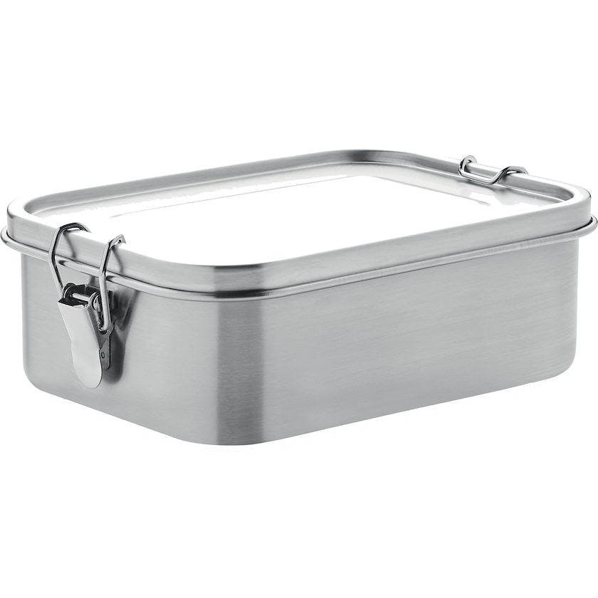 Portapranzo resistente in acciaio inox. All'interno si trova una parete che tiene separate le pietanze. Il tappo è tenuto chiuso da una fascia resistente. Il logo viene inciso a laser.