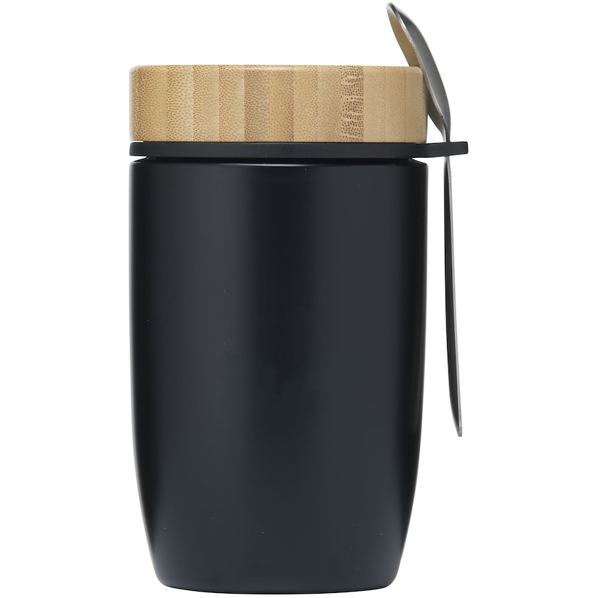 Thermos per alimenti in acciaio inox con tappo in bambù. Le Creusot vanta pareti doppie con chiusura ermetica. È incluso un cucchiaio di acciaio inox. Questo thermos non perde ed è perfetto per ogni tipo di cibo, dalle zuppe allo yogurt alla frutta. Il contenuto è mantenuto alla sua temperatura per 8 ore se caldo e per 24 ore se freddo. Viene confezionato individualmente in una scatola di cartoncino marrone.
