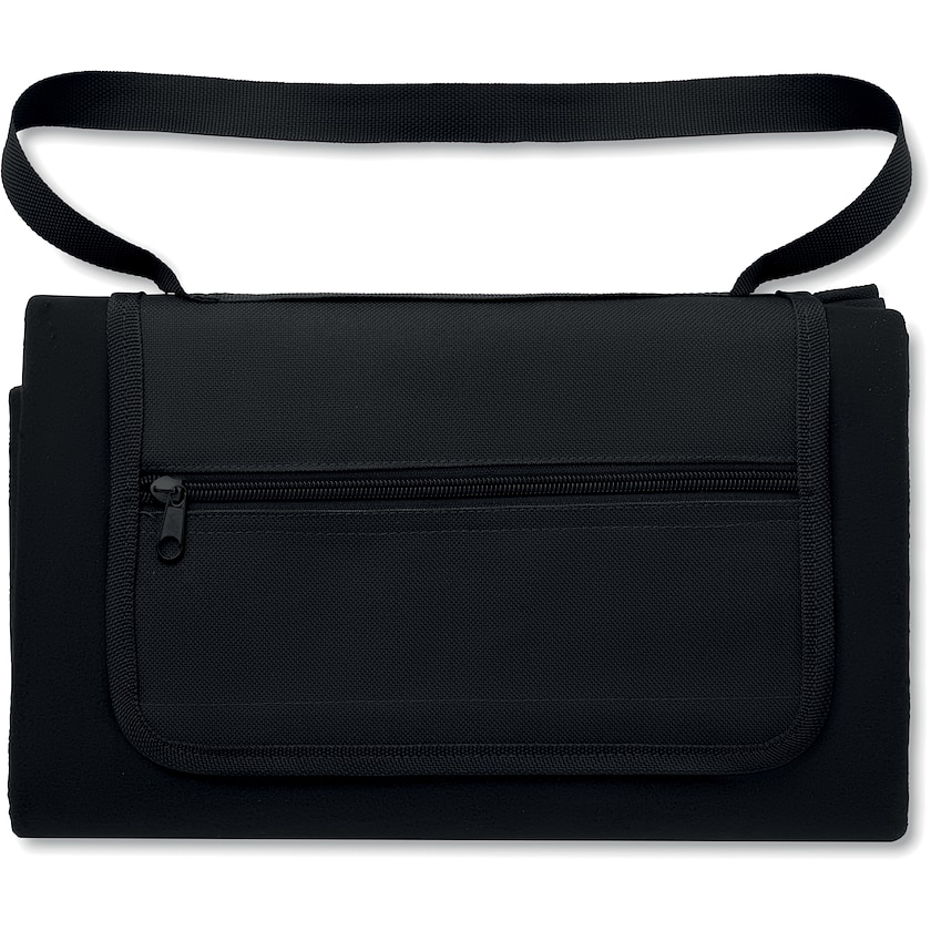 Coperta di pile con strato protettivo in PEVA sul fondo. Grazie allo strato protettivo, la coperta rimane asciutta anche su superfici umide. Quando non viene usata, la coperta può essere ripiegata e, grazie alla tracolla, anche essere portata in spalla.