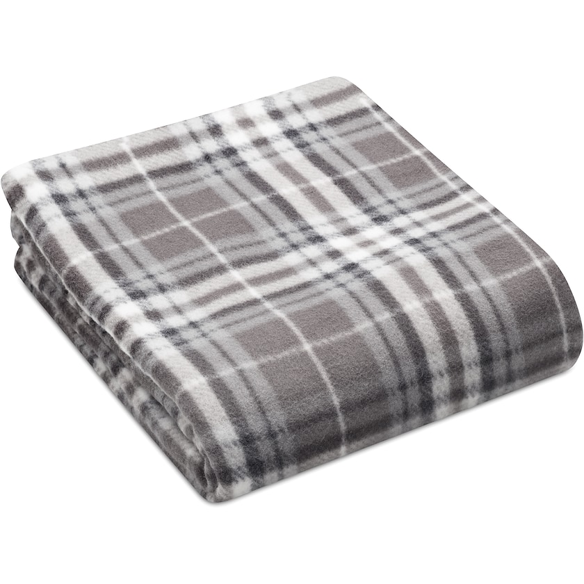 Coperta di pile ecologica con disegno tartan. La coperta è realizzata in rPET, ossia a partire da bottiglie in PET riciclate. La stampa viene realizzata sulla custodia.