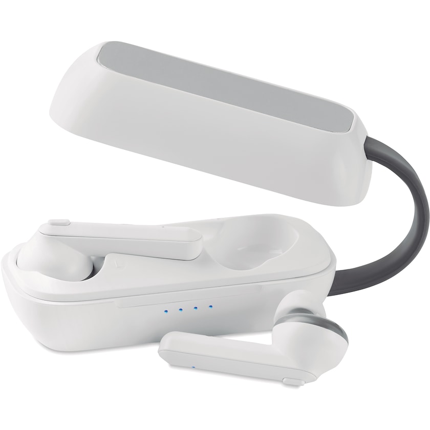 Cuffie senza fili con suono stereo di prima categoria. L'autonomia d'uso è di circa 3 ore con una ricarica. Vengono consegnate all'interno di una custodia che funge anche da stazione di ricarica. Cavo micro-USB incluso.