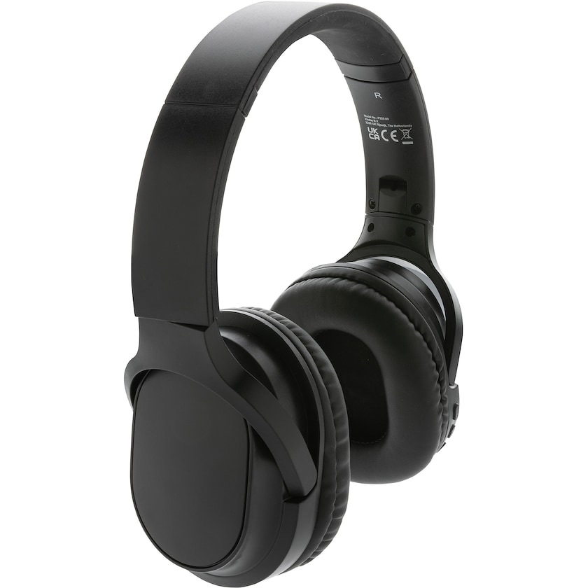 Cuffie senza fili in materiali riciclati. Queste cuffie sfruttano la tecnologia BT 5.1 per garantire un collegamento rapido. L'autonomia d'uso raggiunge le 5 ore con un raggio di 10 metri. Queste cuffie possono essere ripiegate quando non vengono usate. Vengono consegnate all'interno di una confezione regalo di cartoncino certificato FSC.