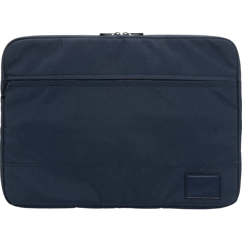 Custodia per PC in poliestere riciclato. Può contenere un PC da 15,6 pollici. Sul davanti si trova una tasca dotata di cerniera per piccoli oggetti.