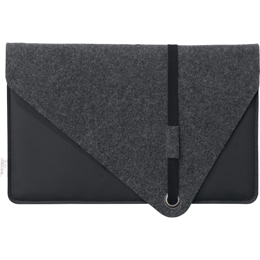 Custodia per PC da 13 pollici in materiale ecologico. Kilgore è realizzata in pelle di mela e feltro di lana riciclata. I dettagli più piccoli sono in gomma biodegradabile e cotone. La pelle di mela sembra pelle vera sia alla vista che al tatto, ma è realizzata con le parti della mela scartate nella produzione del succo. I residui di mela vengono processati e combinati con un misto di PU, poliestere e cotone. La custodia è dotata anche di uno scomparto extra per caricabatterie e documenti. Prodotto nei Paesi Bassi.