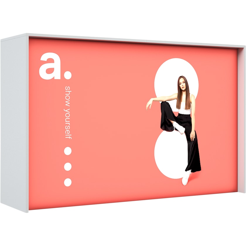 Banchetto da fiera illuminato a LED largo 150 cm. Il banchetto ha una pratica struttura con tenda in tessuto con luci LED che illuminano la tua fantasia. Il montaggio è molto semplice e non richiede alcun attrezzo. Le parti si incastrano semplicemente insieme. Se vorrai cambiare la fantasia in futuro ti basterà ordinare un nuovo tessuto da noi. Una custodia con ruote è inclusa.