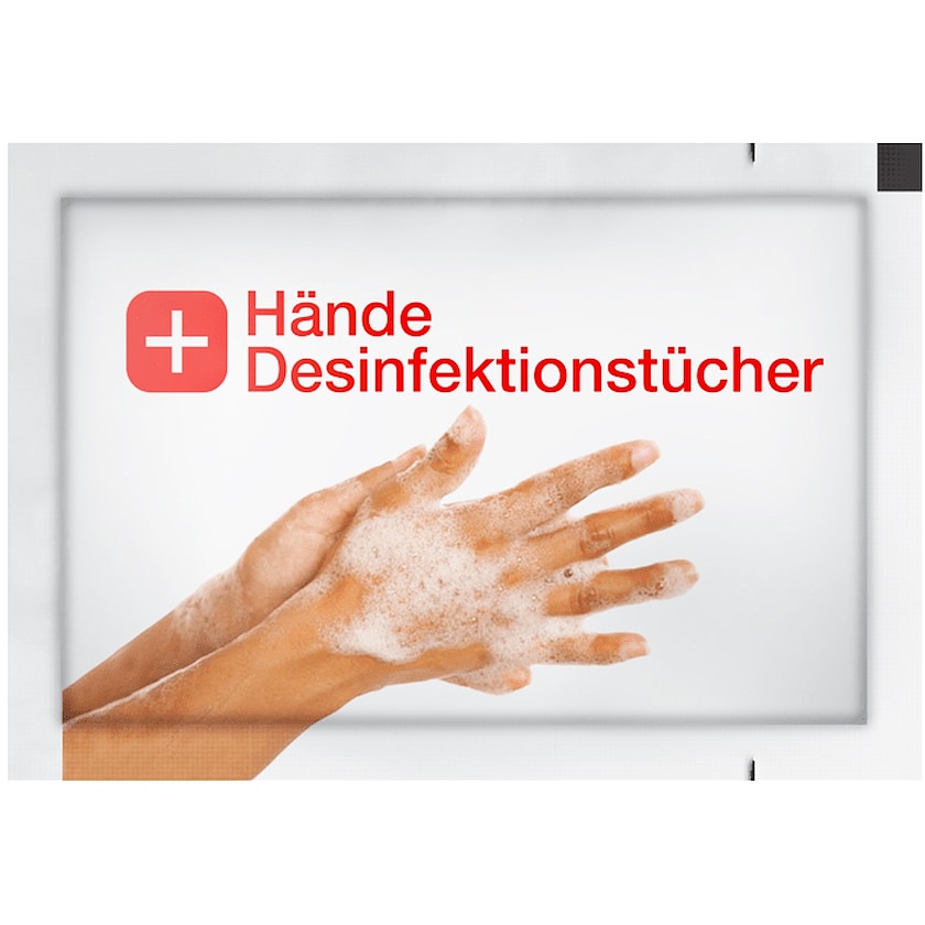 Salviette umidificate con disinfettante per le mani. Sutton contiene alcol che permette di eliminare efficacemente batteri e virus. Le salviette sono monouso. L'intera confezione è personalizzabile secondo i vostri desideri.
