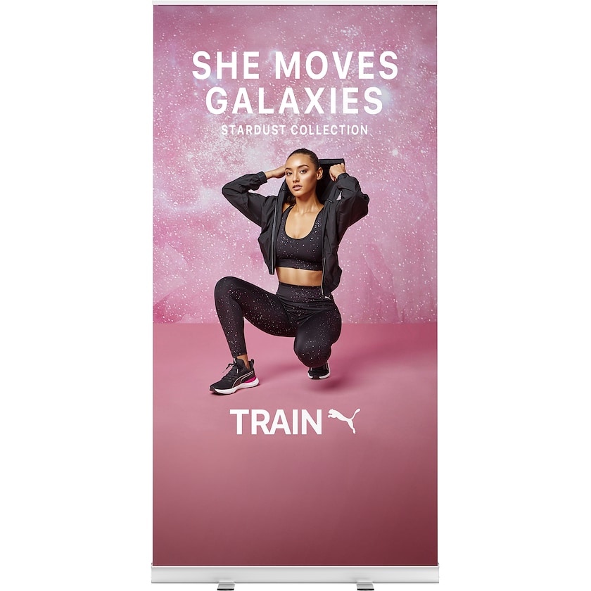 Roll up largo 100 cm con struttura rinforzata. Questo roll up ha una cassa e gamba rinforzata rendendolo più pesante e più stabile. Il tessuto è di tipo Blockout PET 330 g/m², un tessuto di alta qualità con morbida superficie opaca che blocca la luce e dona una riproduzione dei colori insuperabile. La stampa viene realizzata digitalmente con avanzata tecnologia UV LED e colori ecologici prodotti in Europa. La struttura è prodotta in alluminio anodizzato rendendola molto resistente. Il tessuto misura 200 x 100 cm. Consegnato con una custodia con imbottitura extra. 1 anno di garanzia.