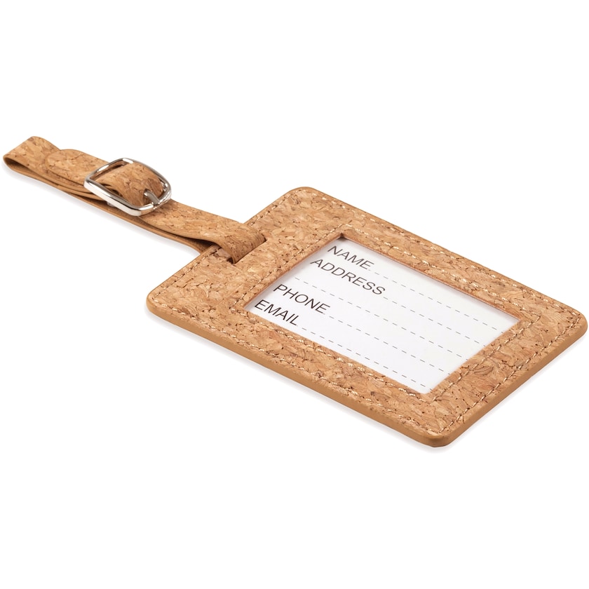 Etichetta per valigia in vero sughero. Un'originale etichetta per valigie prodotta in materiali naturali. Sono proprio le caratteristiche naturali del materiale a rendere unica ogni etichetta per valigie.