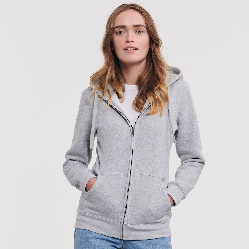 Felpa con cappuccio e cerniera lampo dal design moderno. Questa felpa ha un taglio aderente, con meno tessuto intono alle spalle e alle braccia. Viene consegnata singolarmente in una busta di plastica. Disponibile anche in versione da uomo.