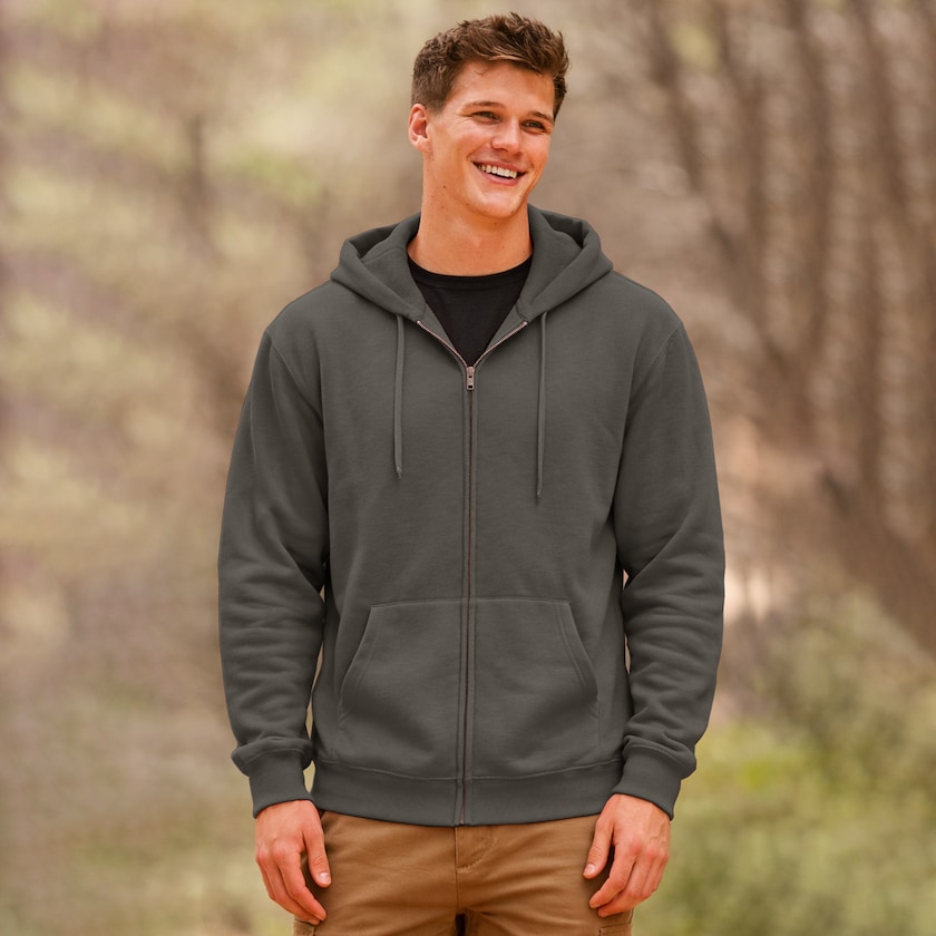 Felpa con cappuccio e zip, in materiale extra resistente. La felpa FOTL Premium Hooded Sweat Jacket è fatta con un tessuto misto di poliestere leggermente più resistente del normale. Confezionata singolarmente in busta di plastica. Disponibile anche in versione da donna.