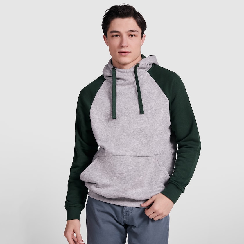 Felpa con cappuccio bicolore in modello unisex. Realizzata in un resistente tessuto in 50% cotone e 50% poliestere. Le taglie vestono abbastanza stretto quindi consigliamo di scegliere una misura più grande del normale.