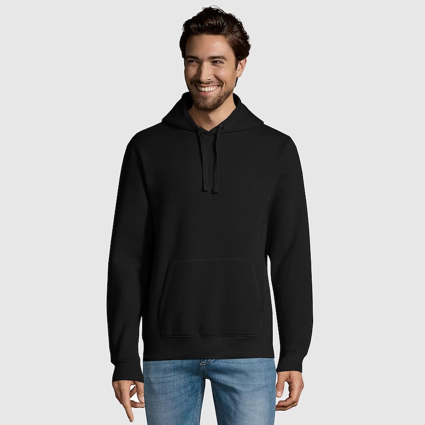 Felpa con cappuccio del marchio francese SOL´s acquistabile da soli 5 pz. Questa felpa con cappuccio vanta un moderno taglio unisex. Il tessuto è realizzato in un mix resistente di cotone e poliestere. Il cotone è certificato OEKO-TEX. Disponibile anche in versione da donna.