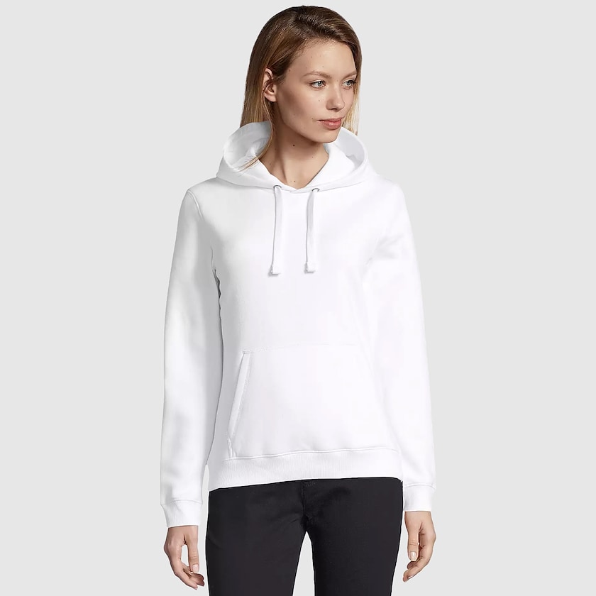 Felpa con cappuccio da donna di marca SOL´s acquistabile da 5 pz. Questa felpa con cappuccio vanta un taglio moderno e al passo coi tempi ed è disponibile in molti colori. Il tessuto è realizzato in un mix resistente di cotone e poliestere. Il cotone è certificato OEKO-TEX. Disponibile anche in versione da uomo.