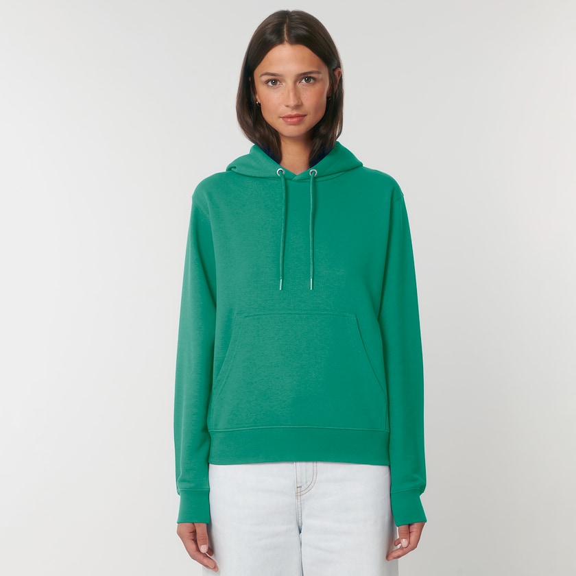 Felpa con cappuccio unisex di Stanley & Stella. Il tessuto è realizzato in 85% cotone ecologico e 15% poliestere riciclato. Una bella felpa di tessuto ecologico.