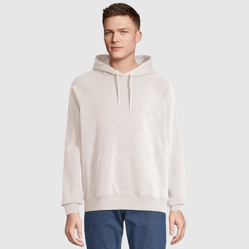 Felpa con cappuccio ecologica del marchio francese SOL´s. Il tessuto pesa 280 grammi per m² ed è realizzato in 80% cotone biologico e 20% poliestere riciclato.