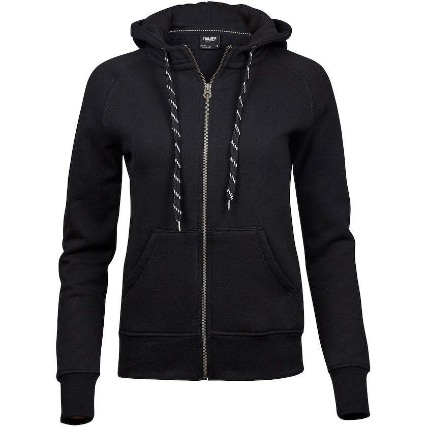 Felpa con cappuccio da donna, di altissima qualità e leggermente aderente. Tröjan è prodotta al 30% in poliestere e al 70% in cotone egiziano di qualità esclusiva, a tre capi. Questa combinazione crea un tessuto molto morbido ed elegante. Confezionata singolarmente in busta di plastica. Disponibile anche in versione da uomo.