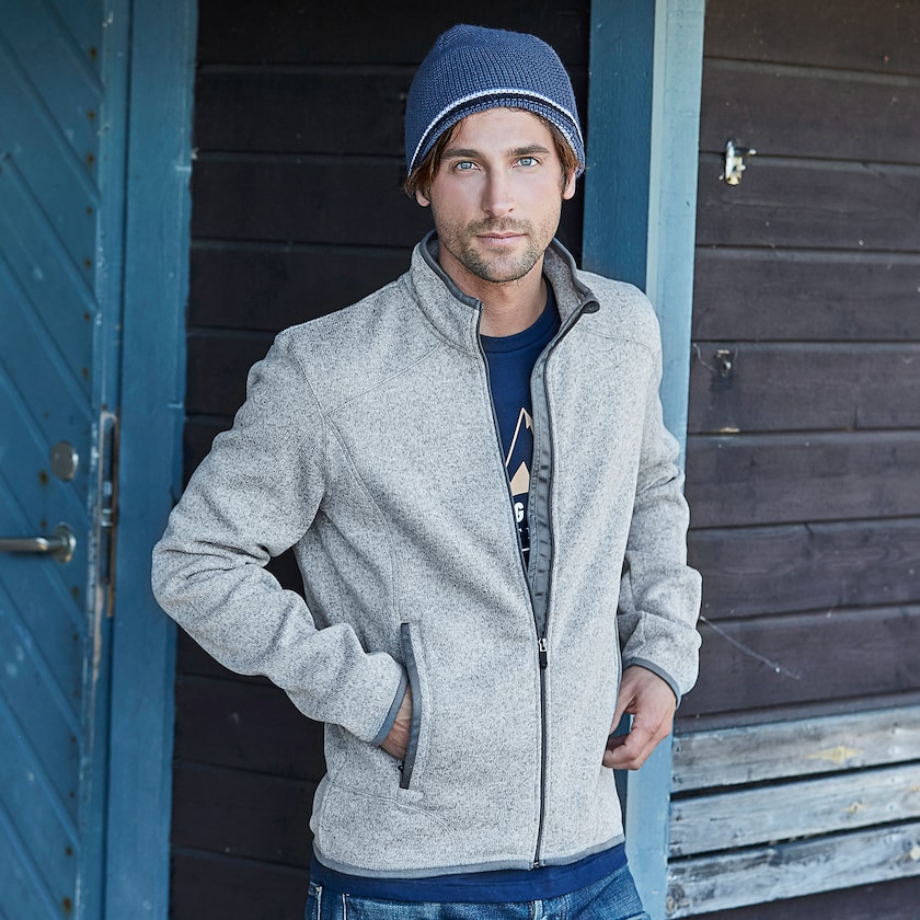 Una felpa di pile rustica, lavorata a maglia, leggermente aderente. Tee Jays Aspen può essere indossata come strato esterno o come strato intermedio sotto una giacca. Il materiale ha una lavorazione a maglia di tipo melange che la rende particolarmente alla moda. Confezionata singolarmente in busta di plastica. Disponibile anche in versione da donna.