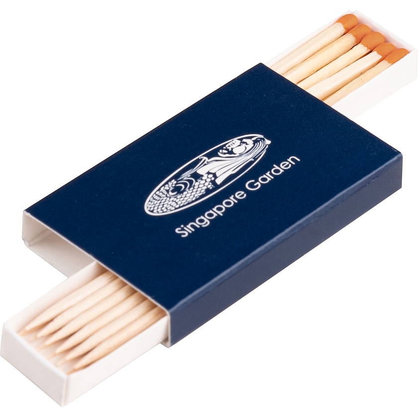 Scatola di fiammiferi con stuzzicadenti. Circa 10 pz di ogni tipo. Puoi scegliere tu stesso tra 16 colori della capocchia e 3 diversi colori del legno.