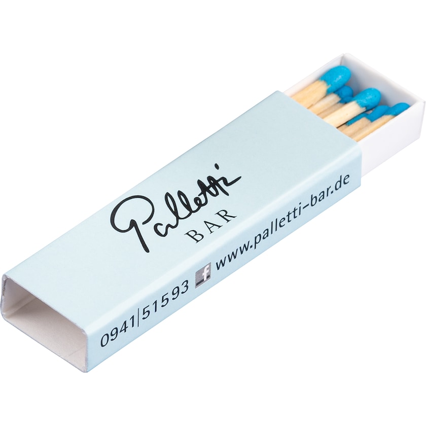 Piccola e pratica scatola di fiammiferi dalla forma allungata. Una scatola di fiammiferi conveniente e uno dei nostri prodotti più venduti. Stampa fino a 4 colori: secondo la scala Pantone. Dai 5 in su: in quadricromia (CMYK). Scegli tra 16 diversi colori della capocchia e 3 diversi colori del legno.