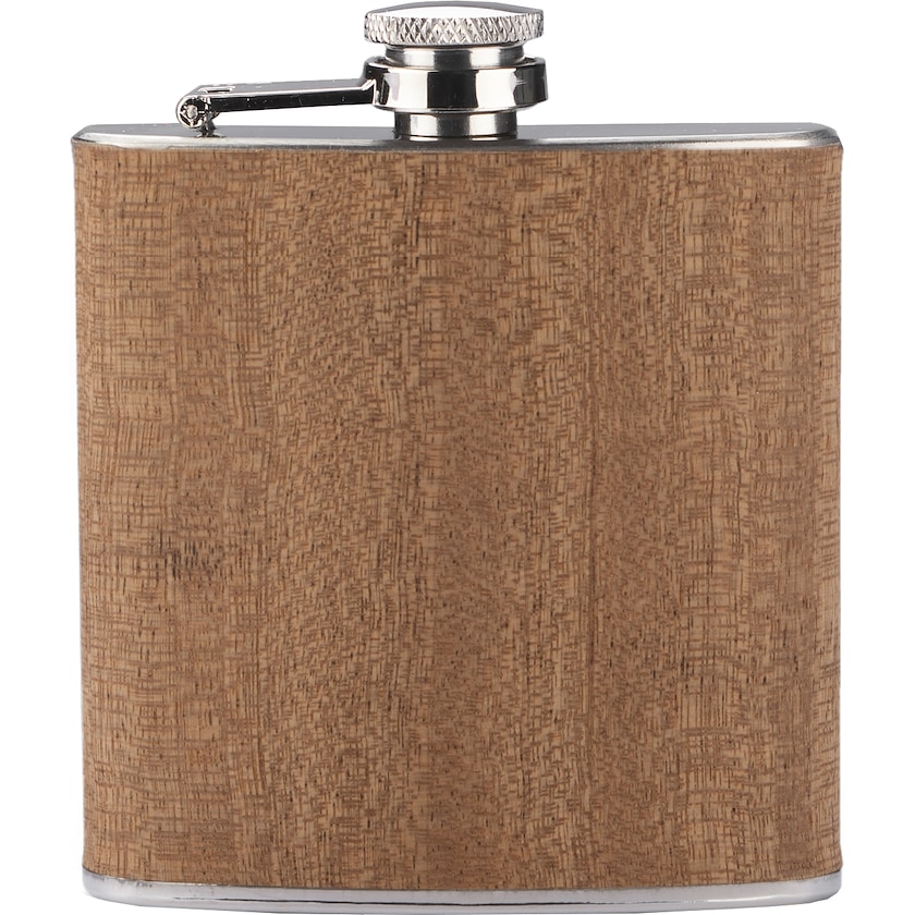 Fiaschetta in acciaio inox con rivestimento in vero legno. La fiaschetta ha una capienza di 20 cl. Scegli tra stampa e incisione a laser.