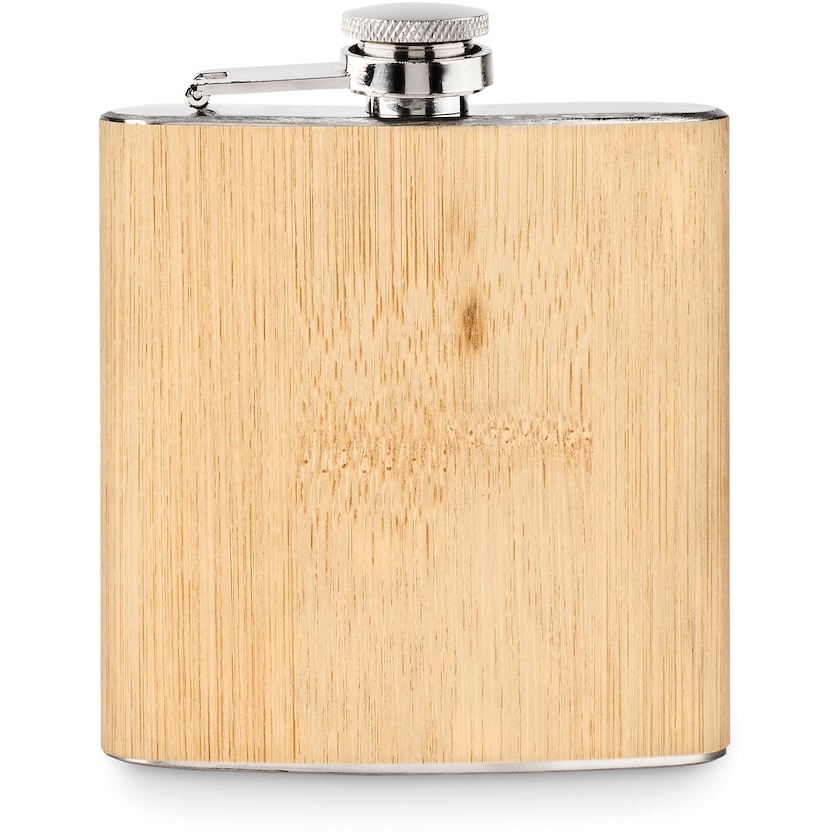 Fiaschetta in acciaio inox con superficie in bambù. Una fiaschetta elegante dalla bellezza naturale. Il logo viene inciso a laser.