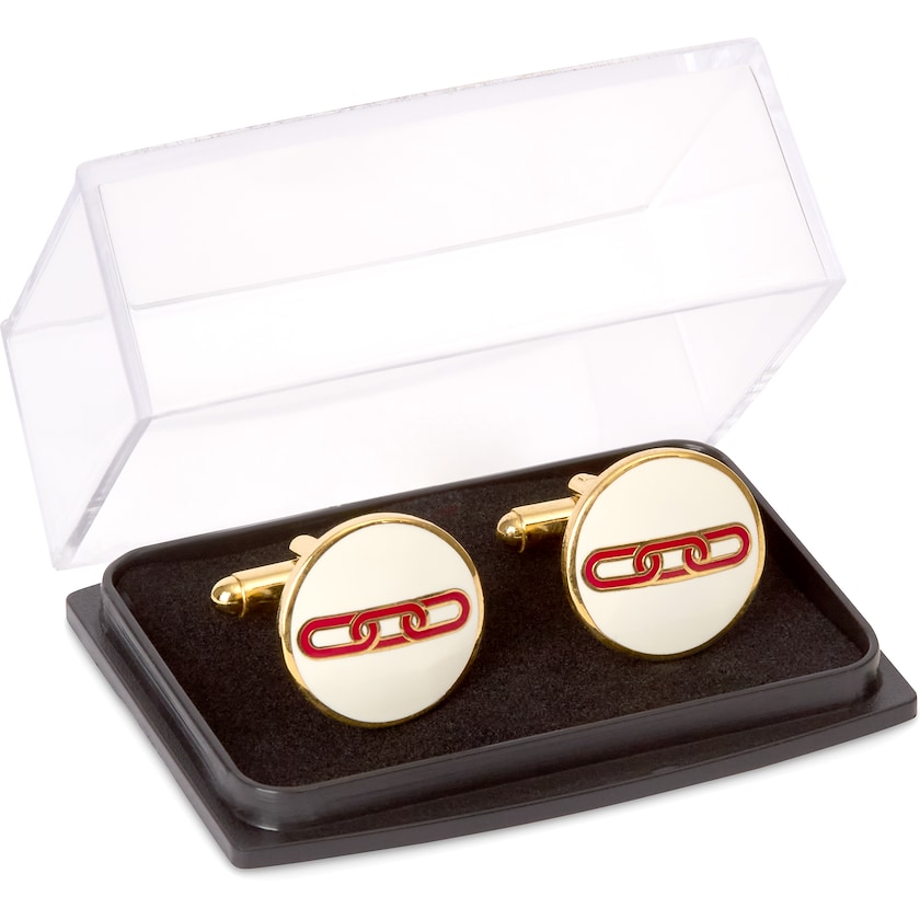 Esclusivi gemelli in ottone e smalto con il tuo logo. I gemelli sono disponibili sia nella nostra forma standard rotonda sia in forma personalizzata. Lo smalto può avere un numero a scelta di colori e l'ottone è disponibile con finiture dorate o argentate. Consegnati in una bella scatola regalo.
