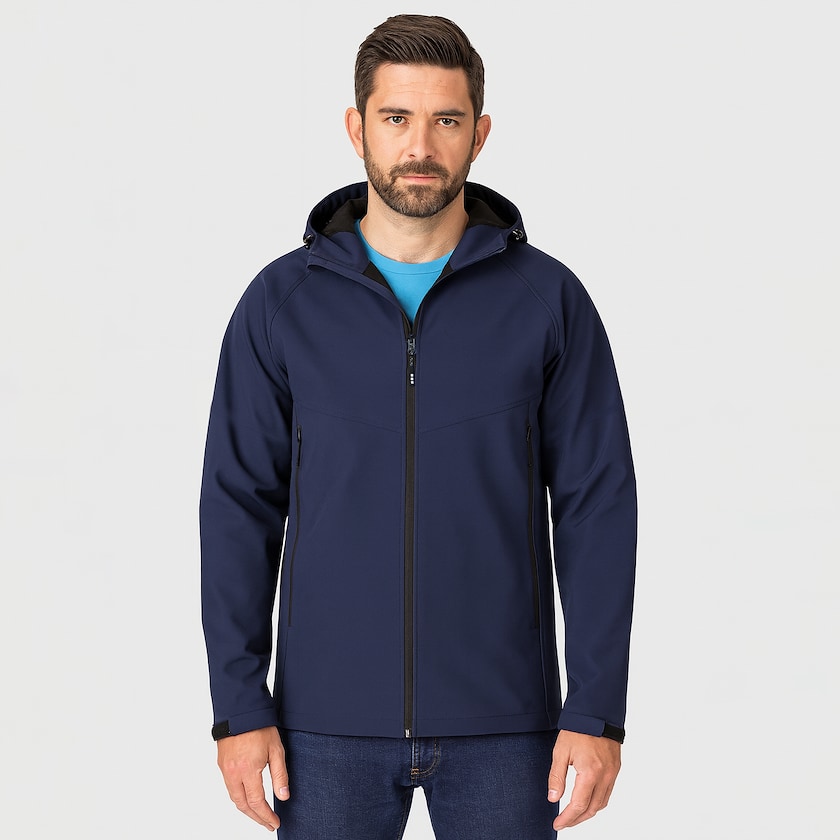 Giacca softshell ecocompatibile da uomo. La giacca è impermeabile (valore di colonna d'acqua di 8000 mm) e traspirante (400 g/m²). I polsini della giacca sono dotati di una chiusura a velcro. Le cerniere a lampo e i lacci sono certificati GRS. Il tessuto è realizzato in 80% poliestere riciclato certificato, 18% poliestere e 2% elastane. L'imbottitura è realizzata in 70% poliestere riciclato certificato GRS e 30% poliestere. Disponibile anche in versione da donna.