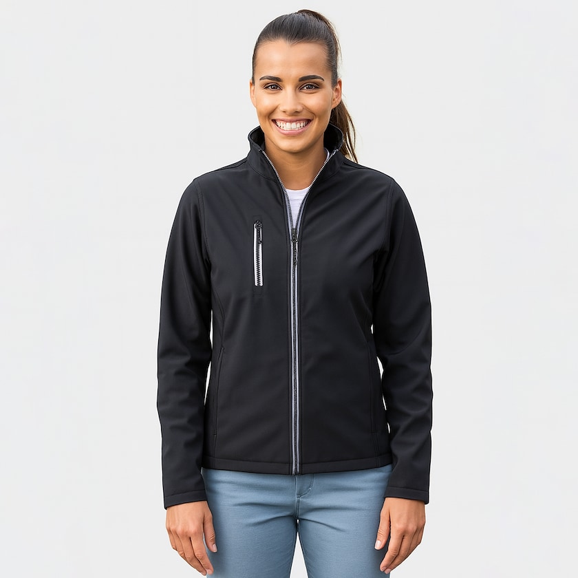Giacca softshell da donna con spedizione super veloce. Questa giacca è dotata di una tasca all'altezza del petto e di due tasche laterali. Il ricamo comporta tempi di spedizione più lunghi. Disponibile anche in versione da uomo.