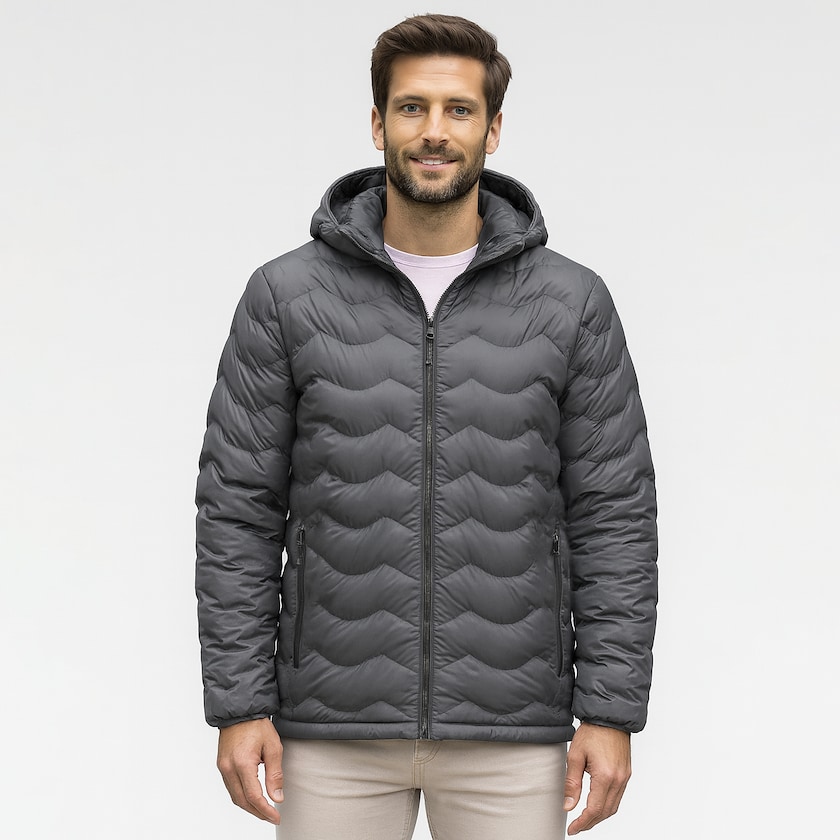 Giacca invernale completamente in materiale riciclato. La giacca ha un bel tessuto trapuntato in nylon riciclato. Le tasche laterali sono dotate di cerniera. Anche i dettagli, come per esempio le cerniere, sono in materiale riciclato. La fodera contiene al 90% piumino riciclato e al 10% piume riciclate. La giacca è certificata GRS. Disponibile anche in versione da donna.