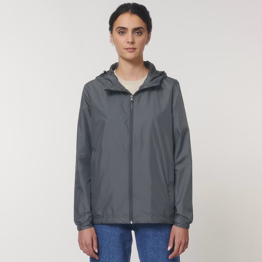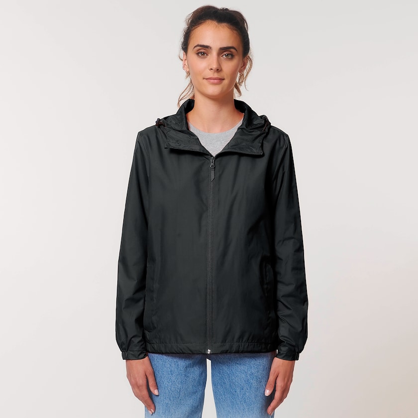 Giacca ecologica con cappuccio. Questa giacca è dotata di tasche laterali. Modello unisex disponibile in tante taglie e colori diversi.