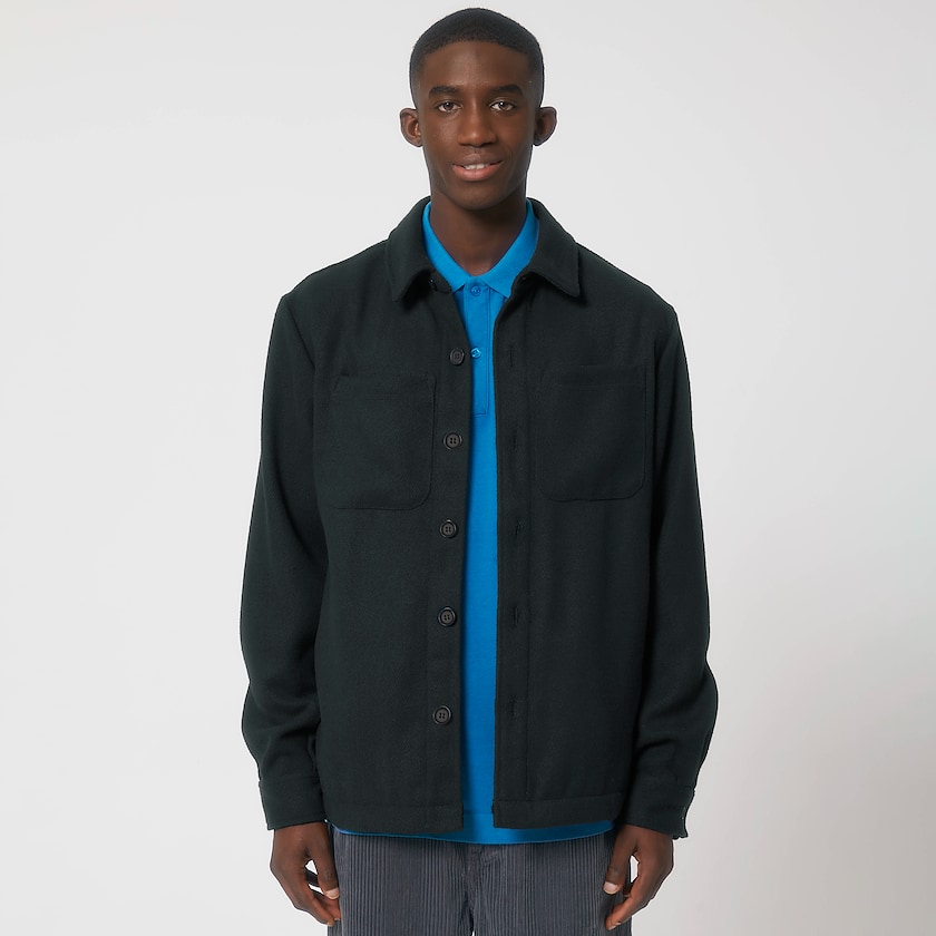Giacca in stile camicia di alta qualità in poliestere riciclato. Questa giacca è dotata di due tasche all'altezza del petto e di due tasche laterali. È sia da uomo che da donna.