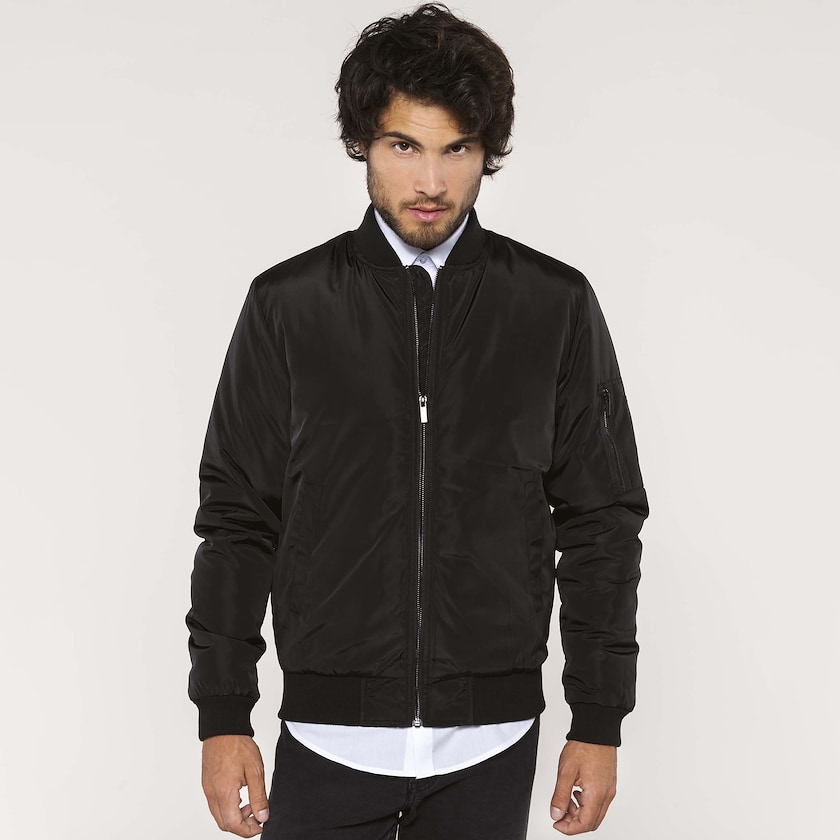 Giacca bomber da uomo. Questa giacca ha tutti le sue famose qualità classiche: è dotata di due tasche laterali, una tasca sulla manica e una tasca interna. Ordina la tua giacca bomber personalizzata su Axon Profil! Disponibile anche in versione da donna.