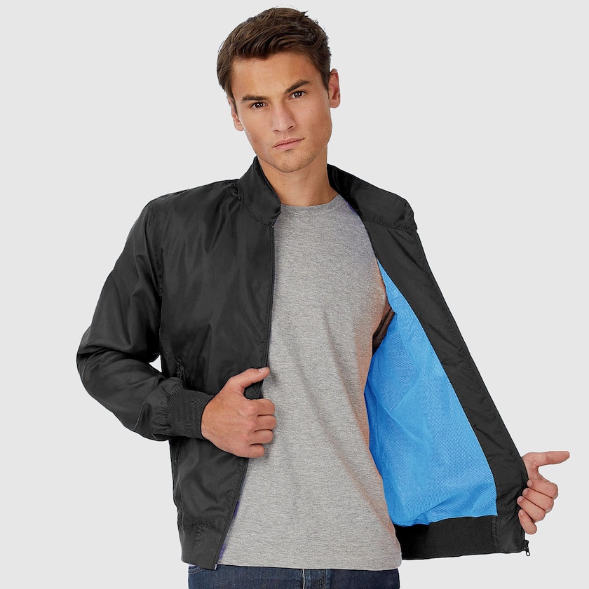 Giacca bomber da uomo alla moda. La giacca ha un cappuccio nascosto nel colletto, due tasche esterne con chiusura zip ed una tasca interna. Una bella giacca bomber alla moda! Disponibile anche in versione da donna.