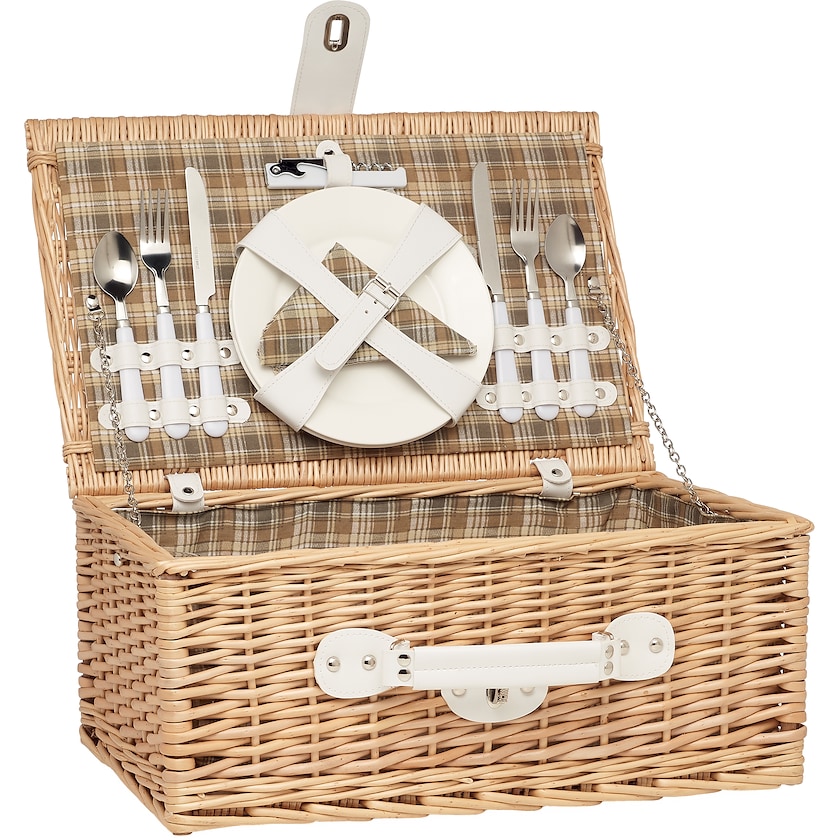 Cestino da picnic con tutto il necessario per una merenda per due. La stampa viene realizzata sulla chiusura del cestino da picnic. Ecco un bel regalo estivo per dipendenti o clienti importanti.