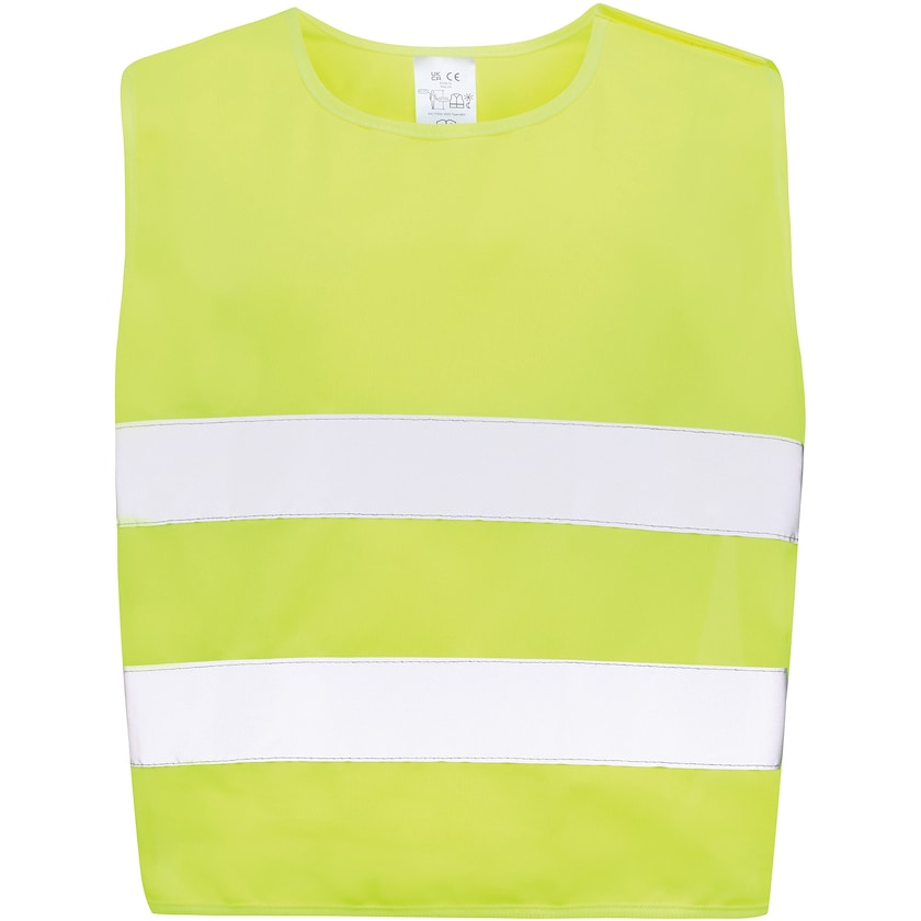 Gilet catarifrangente per bambini tra i 3 e i 6 anni. Adatto per bambini di altezza compresa tra i 70 e i 104 cm. Il tessuto è realizzato in rPET, ovvero PET riciclato. Il gilet è conforme con EN 17353:2020, tipo AB3 e con le linee guida nella procedura EU (EU) 2016/425 per i dispositivi di protezione individuale di categoria 2.