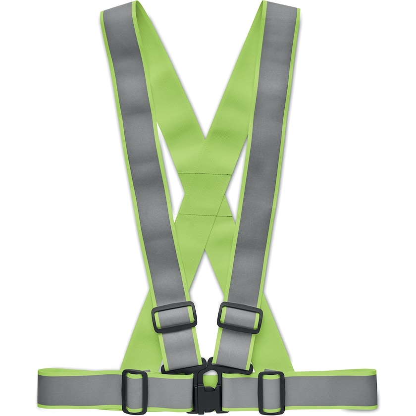 Bretelle catarifrangenti regolabili con riflessi argentati. Rispetta lo standard EN17353: 202 TYP-B3. La stampa è realizzata sulla cintura o sul retro delle bretelle.