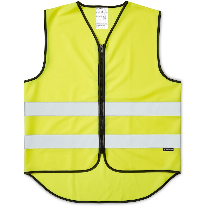 Gilet catarifrangente dotato di cerniera in poliestere riciclato. I catarifrangenti sono ampi 55 mm. Il gilet si chiude con una cerniera. Mescola liberamente le taglie S/M e L/XL. Il gilet è a marchio CE e rispetta lo standard EN ISO 20471:2013+A1:2016 classe 2.