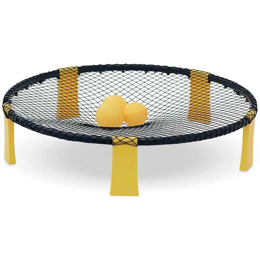 Divertente gioco da esterno per grandi e piccini. Dividetevi in due squadre e lascia che una cominci a servire la palla sulla rete. Quando la palla rimbalza, l'altra squadra ha tre tentativi per riuscire a rimandarla sulla rete. Se non ci riescono, la squadra che aveva servito ottiene un punto. Vince la prima squadra che raggiunge il punteggio prestabilito più velocemente. La stampa viene realizzata sulla custodia o su una delle gambe.
