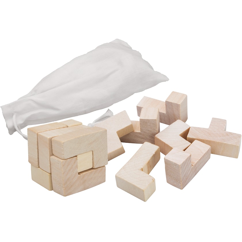 Un gioco in legno che allena la mente. È realizzato in legno. Un gioco di intelligenza molto conveniente! Scegli tra stampa e incisione a laser. La stampa viene realizzata sulla custodia mentre l'incisione laser su uno dei blocchetti di legno.