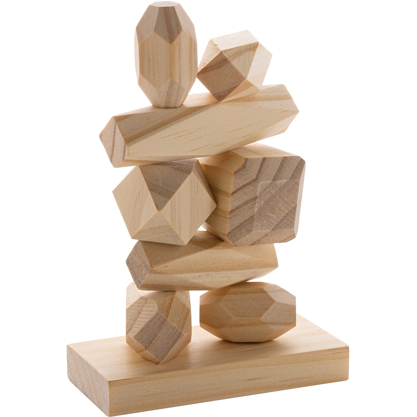 Gioco in cui si bilanciano le diverse parti le une sulle altre. Realizzato in legno di pino certificato FSC. Una custodia in poliestere riciclato certificato GRS è inclusa.